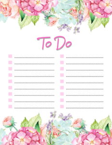 This floral-decorated list is the perfect way to organize your to-dos and make sure you stay on top of everything. The vibrant and colorful flowers will add a touch of cheer to your day, and the convenient checkbox format makes it easy to mark off each task as you complete it.